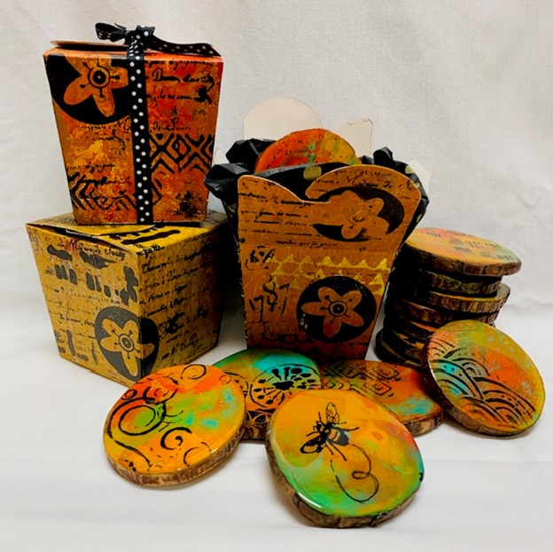 The del Sol Gallery is excited to offer monthly fun and informative demonstrations by some of our fabulous and creative artists. On Wednesday, January 18, Gayle Larson, and her lovely assistant Reny Missos are the geniuses behind the table for DEMO DAZE. They will demonstrate and answer any questions you have about Gelli Printing. This exciting and fun art form utilizes an array of mediums for printing on anything you can think of-paper, bags, fabric, wood-the possibilities are truly endless.